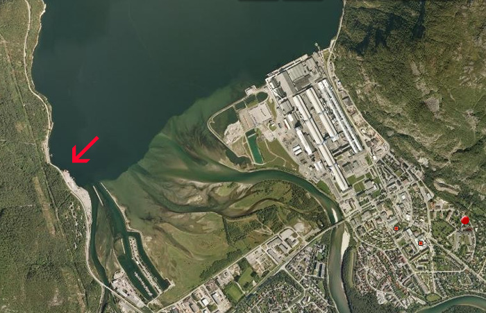 Hammarkaia der båten ligger var i bruk under byggingen av Aura kraftanlegg. Nå ligger det enda en båt på bunnen her, en fraktebåt som heter " Betong" som gikk ned rundt 1978. Utafor den gamle kaia er det brådypt til 40 m. AURA AVIS