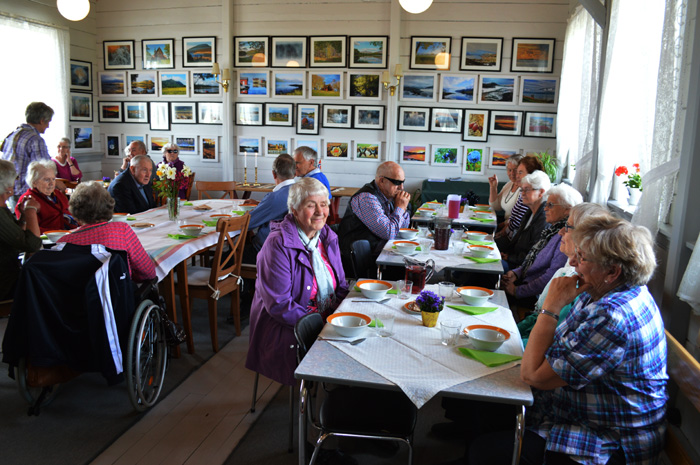 Etterpå var det prat og litt serveing i "Klippen", et eldre bedehus(?) som ble flyttet hit for rundt 15 år siden. (Foto: Magnar Heggeset)