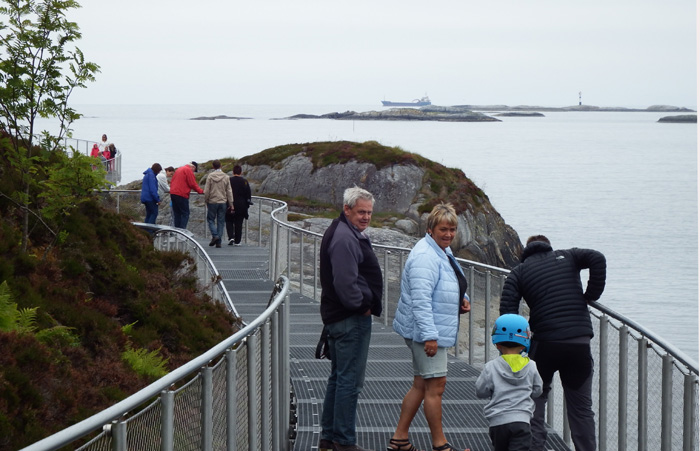 Folk strømmet til på de nye gangveiene som går rundt øya her. Bra for de som gikk inn for noe slikt her på Atlanterhavsveien. Det var på tide etter 25 år siden åpningen. (Foto: Bjørn Ove Angvik)