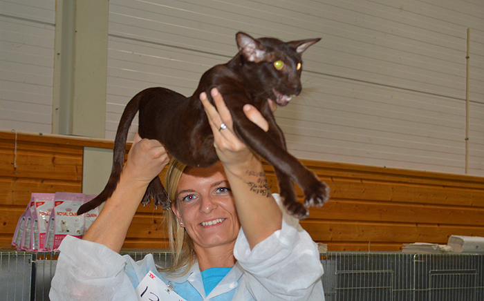 Olav Øverlie fra Ålesund og Sunnmørskatten fikk premie for denne katten. Ukjent kattetype. (Foto: Magnar Heggeset)