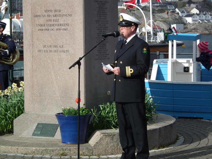 Også i Kristiansund var det markering av veterandagen i dag 8. mai i forbindelse med 70 årsdagen for kapitulasjonen i1945. Denne dagen vil alltid stå i fokus i norsk historie. Det var Richerd Rosvoll som er sjef i Sjøheimevernet som ledet minnemarkeringene i byen i dag.
