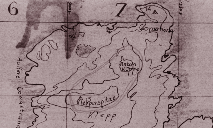 Tyskerne omdøpte noen av navnene: Kleppenspitze er dagens Langhaugen. Ytterste haug het faktiosk Gomahorn. Haugen med lyskasteren het Anton Kuppe.