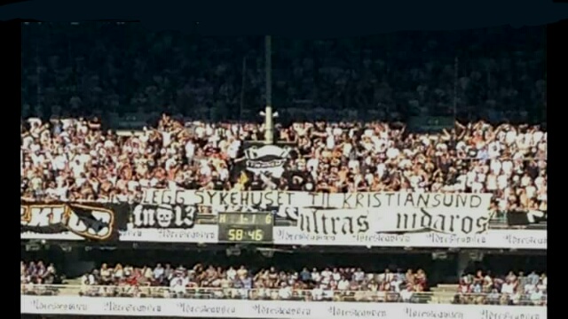 Et herlig banner på Lerkendal stadion i Trondheim lørdag med støtte i sykehussaken ifølge en nettside på FB. Man ser også forslag om å lagevet banner med " Nordmøre til Nidaros " blandt kommentarer.