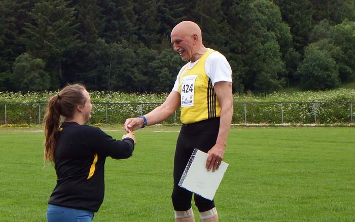Stor applaus for Henry Opland som nesten 80 år gjennomfører et slikt løp etter landeveien. Nesten utrolig. ( Foto: Bjørn Ove Angvik)