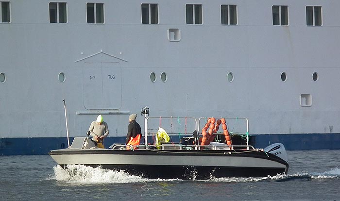 Etter det vi kjenner till er det fritt fiske etter leppefisk ( bergylter) som brukes ioppdrettsmerder for laks. Mange slags båter er kommet etter hvert utstyrt med levendefiskbrønn. Gjerne er det to mann som holder på med slikt fiske, og der visstnok ingen skal ha eneretten til et område. Noen sunnmøringer som reiste med båt og utstyr til Oslofjorden fikk anmeldelse for en tid siden, uten vi vet hvordan det gikk. Merkelig at det ikke er konsesjonsbelagt dette fisket ennå. Her en slik leppefiskebåt i havna ved " Magellan" cruiseren forleden. ( Foto: Håkon Bloch)