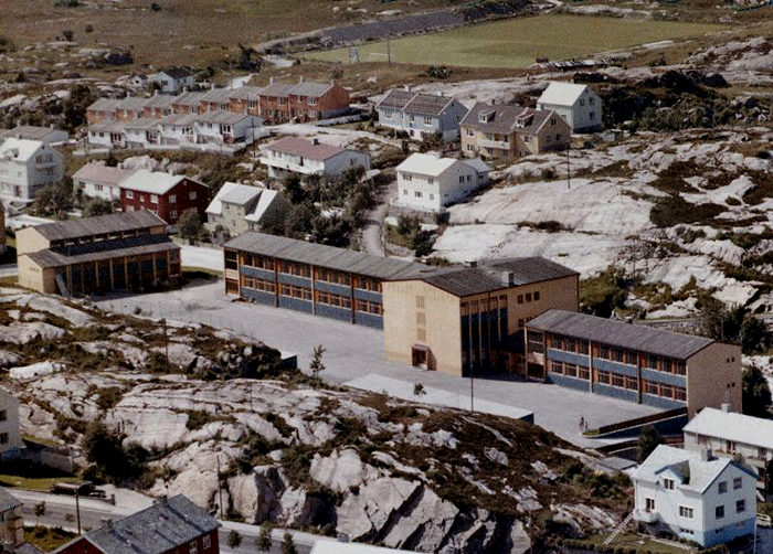 Ny skolestruktur her i byen etter møte i bystyret i dag. Dermed kan Dalabrekka skole og Gomaskolen slås sammen til en ny skole på Goma( ?). Siste ord er vel ikke sagt, men det er ikke bare i Kristiansund det er endring i skolekretsene. I nabokommunen Averøy går det også mot nedleggelser og bygging av ny sentral skole ved Kårvåg. Dalabrekka skole legges ned. Det kan det bli bruduljer av. ( Foto: Nordmøre Museum )