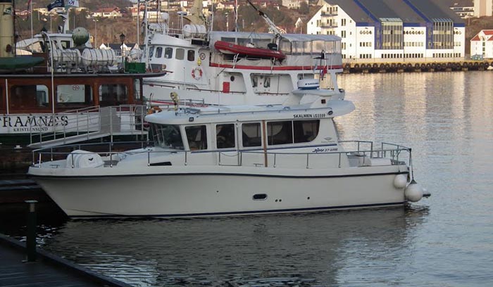 M/B Skalmen, 12 x 4 x 1 m., bygget i 2007, max.fart er 40 knop. Passasjerbåt som eies av Holberg Shipping fra Dyrnesvågen på Smøla. De har også den tidligere MRF sin M/S Aure. De frakter passasjerer til og fra byen til oljeriggen Songa Encourage som ligger på Bremsnesfjorden. (tekst/foto Håkon Bloch)