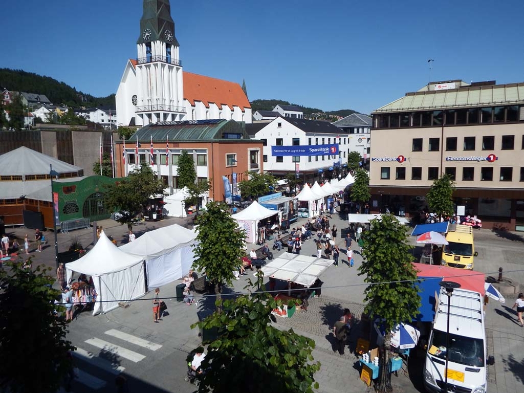 Utsikt fra Molde -torget ned mot plassen foran Rådhuset i finværet. ( BN)