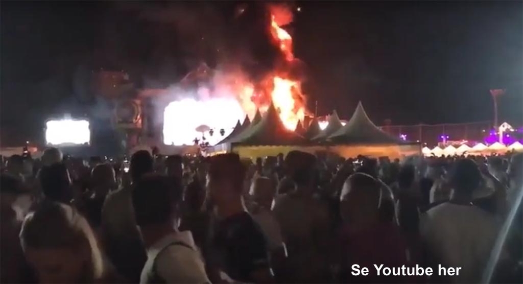 Skumle greier : 20. 000 mennesker evakuert fra en brann under Tomorrowfestivalen i Barcelona i Spania lørdag kveld. Ingen er visst skadd ifølge medier.