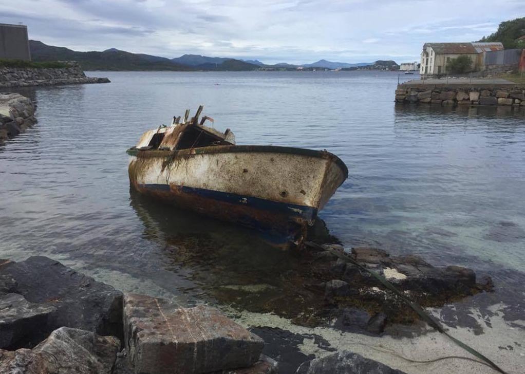 Motorbåten som har ligget på bunnen ved badestranda " Barnebasen" i Omagata på Nordlandet en tid ble tatt opp på land i dag. Det gikk nesten uforståelig raskt her i byen.