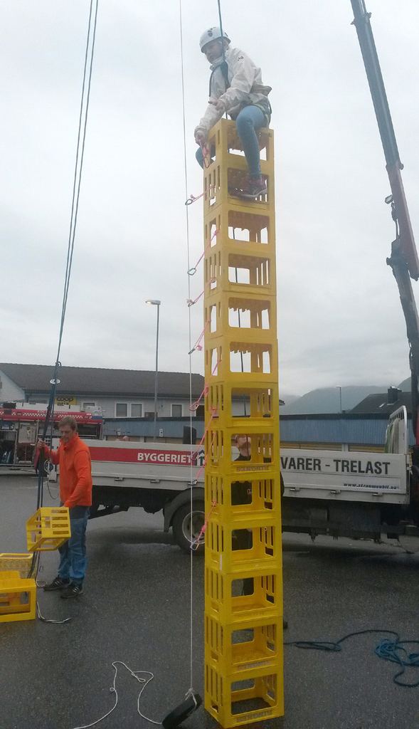 Kasseklatre-konkurranse der Marthe fra Elnesvågen klarte 24 av 25 kasser før hun hang i tauene. ( Foto: Magnar Heggeset)