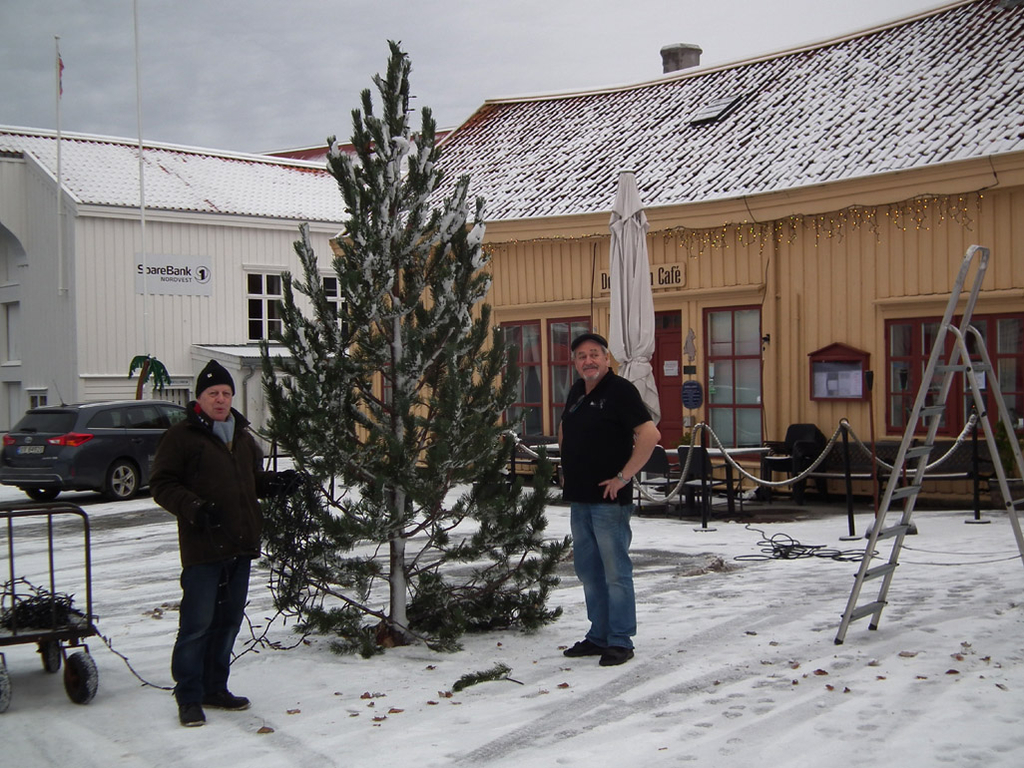 Det blir juleverksted og julegrantenning ved “Dødeladen Cafe og Kultursted” søndag klokken 15:00. De der borte holdt fredag på å gjøre alt klart. Grana kommer fra Kristiansund kommune ved hjelp av Parketaten.