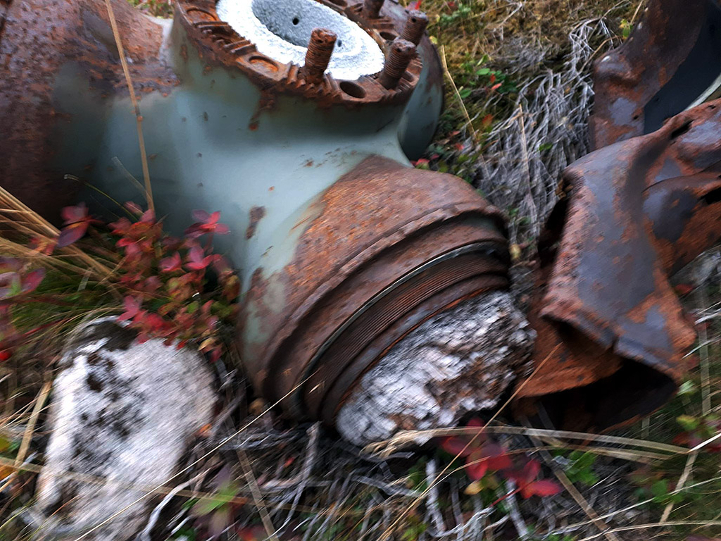 Deler ligger ennå oppe på styrtstedet. Dette skjedde 11. februar 1944. ( Foto: Jan Richard Meek)