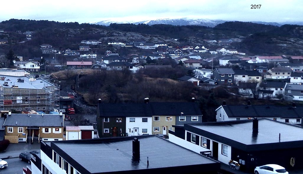 Karihola i Kristiansund her gjennomghått store forandringer, Først i 1940 da tyskerne anla et kystbatteri og et luftvernsbatteri her med 172 forskjellige byggverk. I 1971 begynte en traktor å grave en grøft noe som skulle bli til et nytt boligområde oppsatt 1974 til 1980. Her to bilder som viser den voldsomme forandringen i området her nord på Kirkelandet 1967-2017.Tatt fra samme posisjon. (BN arkiv)