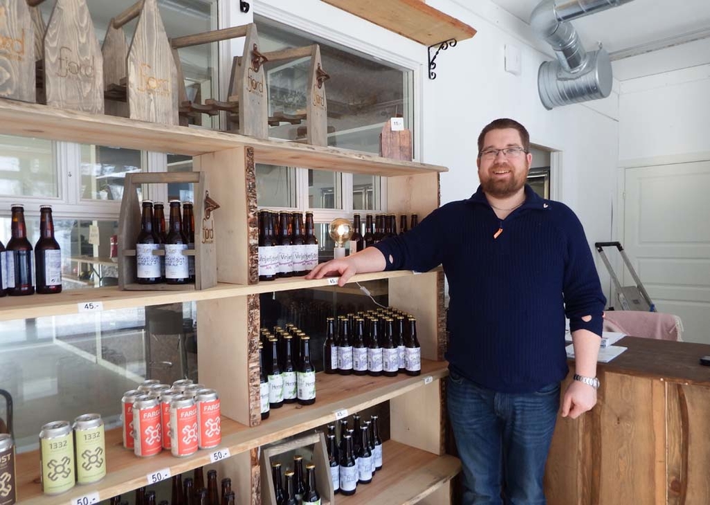 Åge William Tølche er lett å stikke innom på E 39 på Vinjeøra. Lokalt laget øl fra Fjord bryggeri som navnet er. ( Foto: BN)