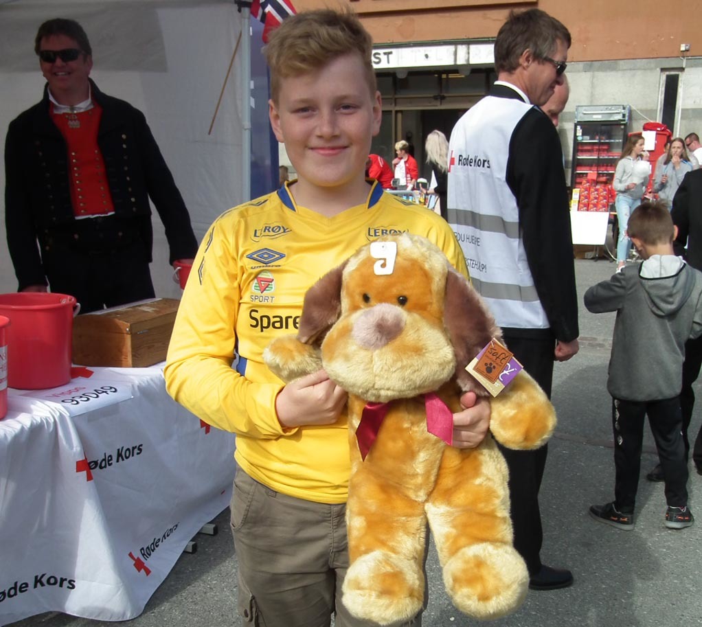 Henrik Eeg vant hovedbamsen til Røde kors på Kongens plass 17. mai ( Foto: Håkon Bloch)