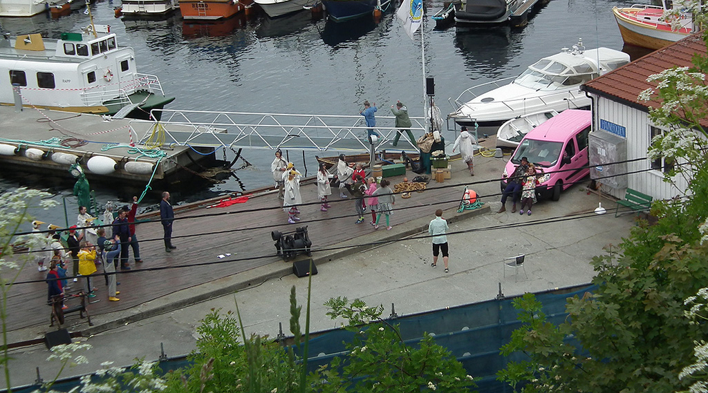 Her ved Likvorden på Gomasiden av Vågen skal det være forestilling. Braatthallen Stagepartner har satt opp tribuner. ( Foto: Håkon Bloch) Forestillinger Operaen