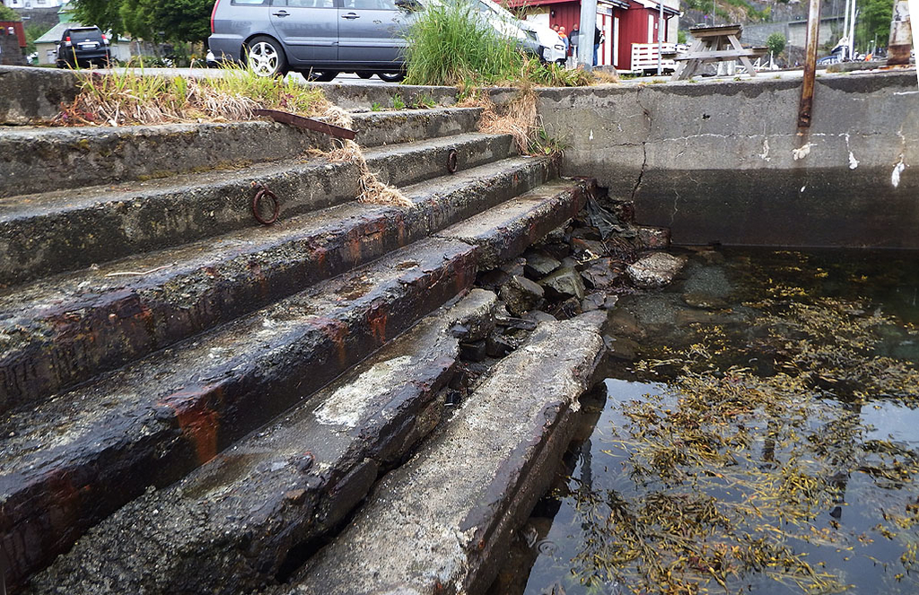 Oppi all virak og kostnader med Kranaskjæfret, så ser trappa på gamle ærverdige Vedkaia i Vågen ut som om den har vært med på invasjonen i Normadie i 6. juni 1944. Det må da gå an at noen tar tak i dette og får fikset denne. Det skulle ikke være store kostnaden. Til og med en vanlig privatnann har vel hadd råd til det. Værsågod !