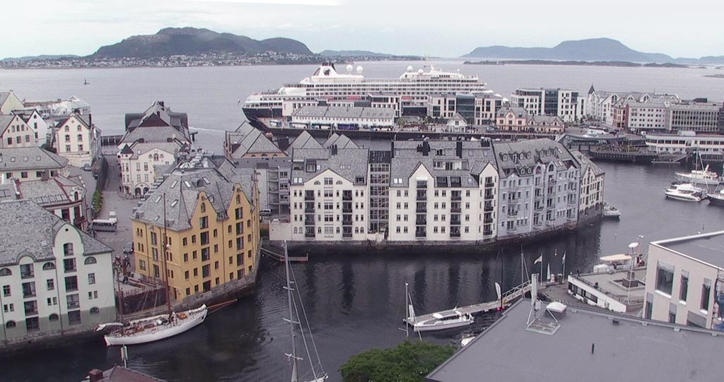 Nordre havn Skansekaia ligger " Prinsendam". Sikkert stappfullt av folk i sentrum her i dag. ( Foto: Web Ålesund havn)