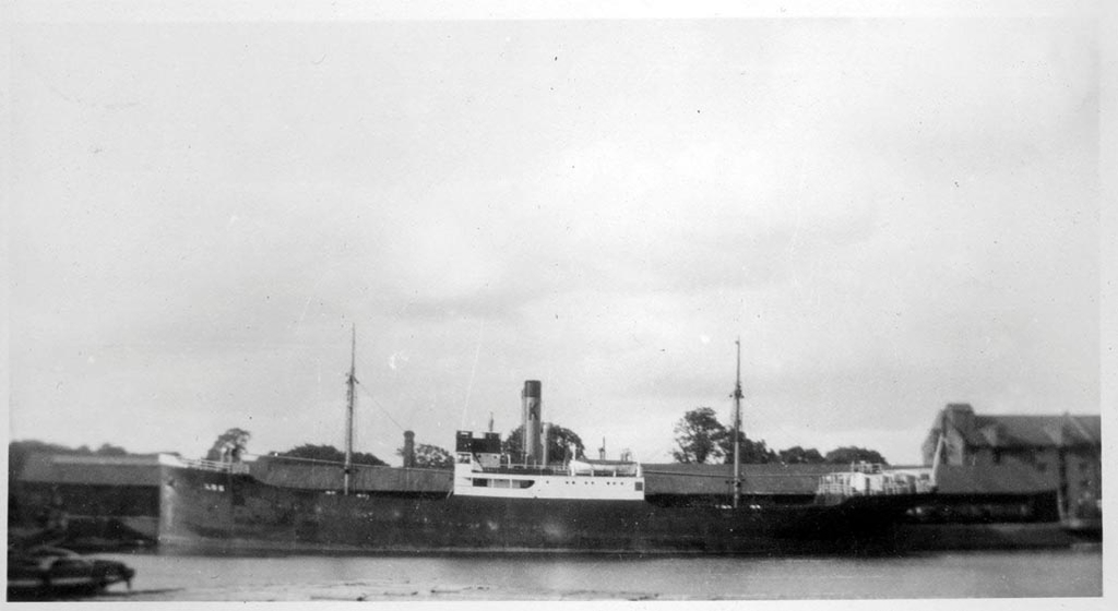 Dette skipet D/S " Log" ble hevet ut av havna i Ålesund i 1958 og hugd opp. ( Foto: Ukjent)
