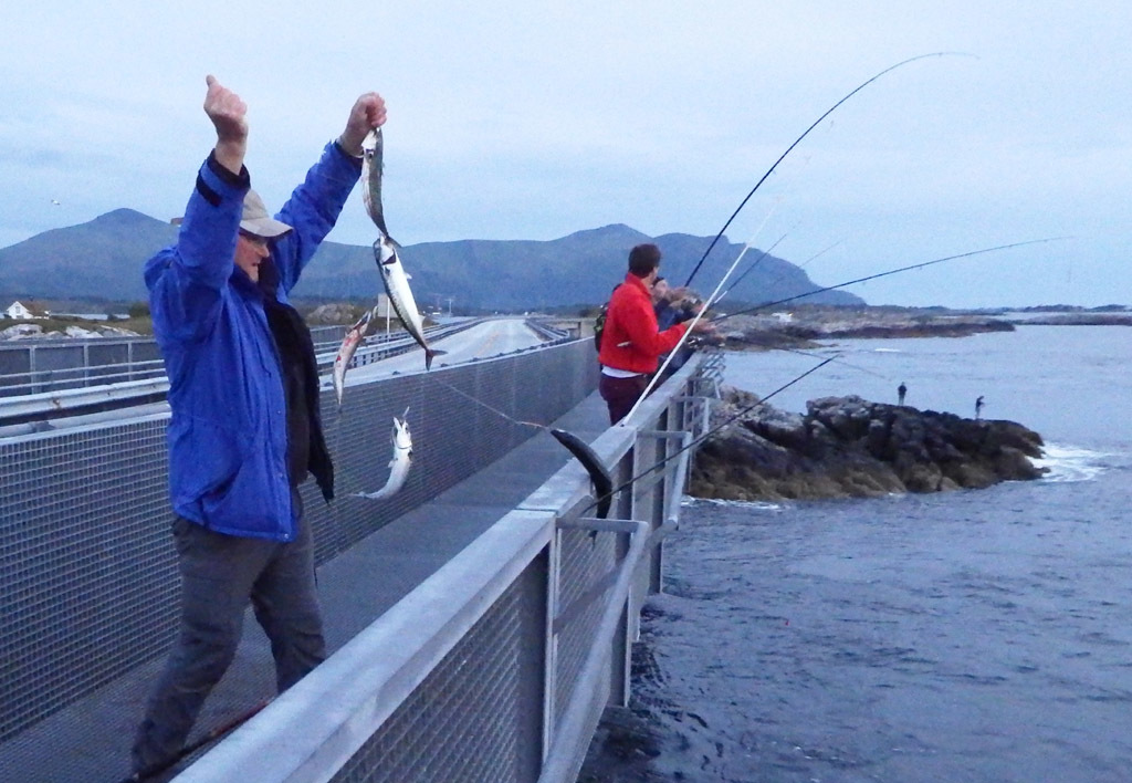 På begge sider av brua var det bra fiske.