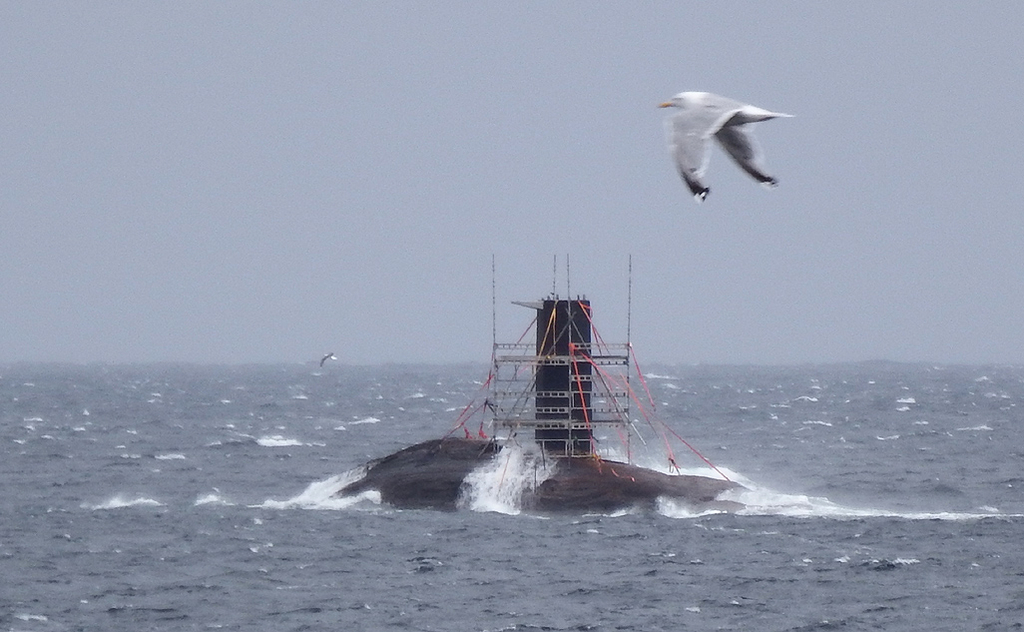 Her har Kystverket begynt med nytt sjømerke. Nå er det meldt sterk kuling, så det som står her får kanskje prøvd seg. ( Foto: Boa/ BN)