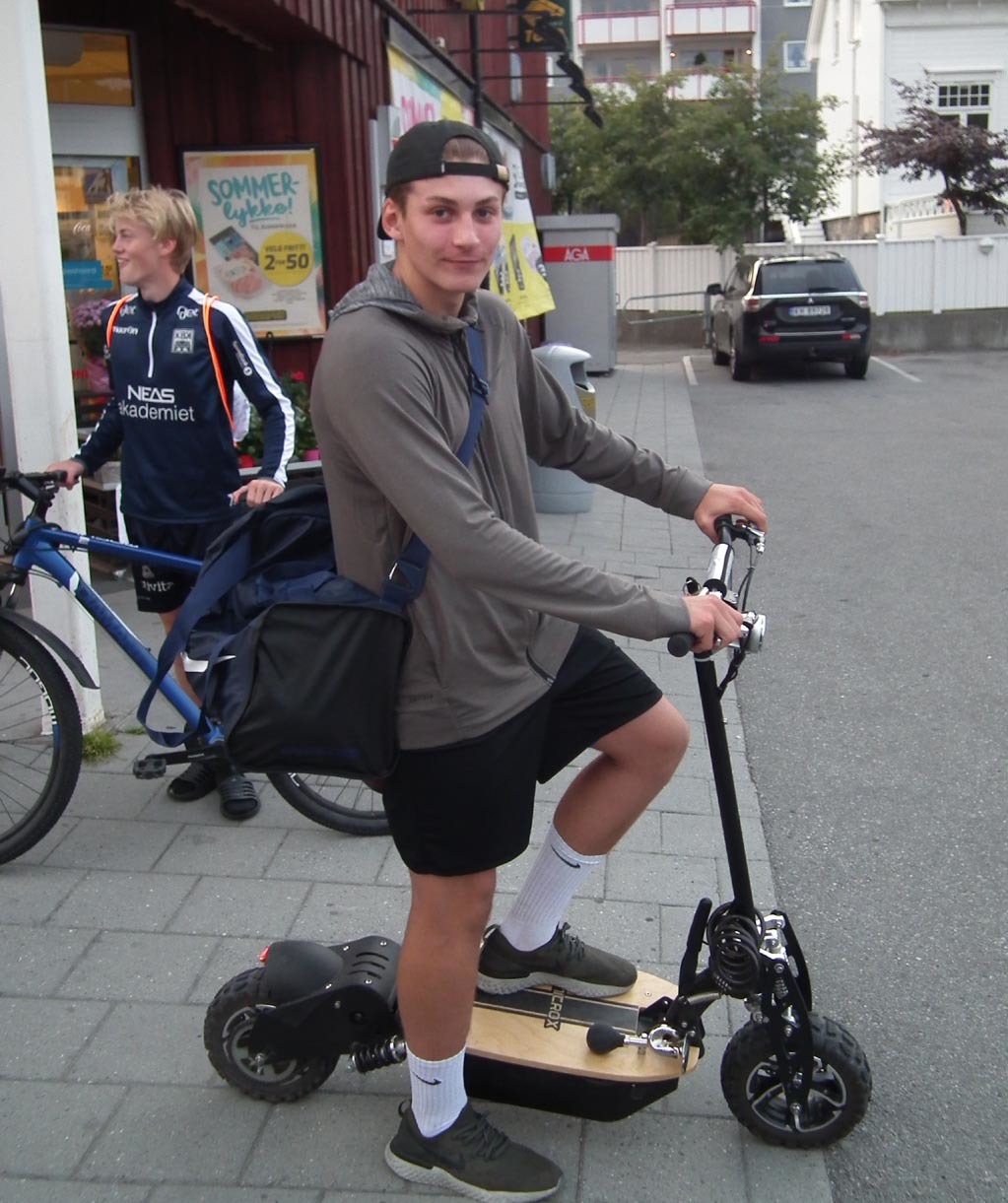 Elias Larsen på “Goped” i Brunsvika . Han sier at en må være 16 år og max 20 km/t.( Tekst/ foto: Håkon Bloch)