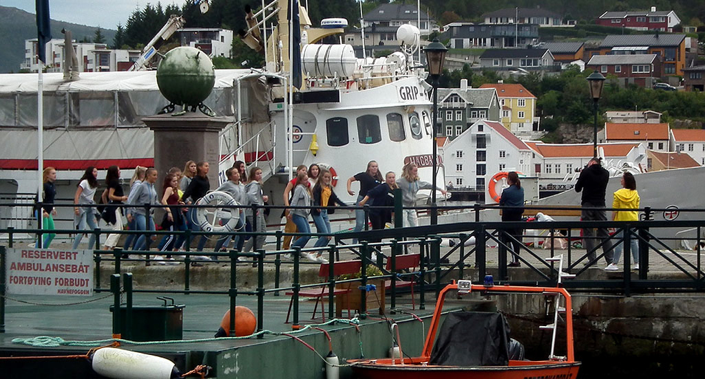 Et 20 talls jenter holdt på å danse på Piren i Kristiansund søndag ettermiddag. Vi får inderlig håpe det ikke var regndans; eller kanskje det er best med så lite vann i kraftmagasinene inne i fjorder og fjell.