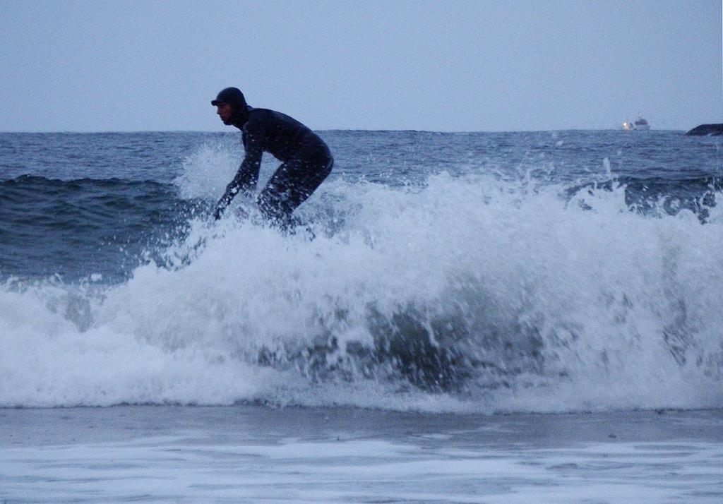 Noen brukte dagen til sjøsport denne 1. søndag i advent. På den berømmelige Farstadsanden var det ikke all verden av bølger, men et par mann holdt på med surfebrett der .