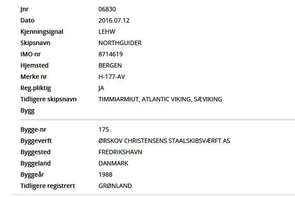 Tråleren " Northguider" registrert i Bergen grunnstøtt i farvannet ved Nord-Svalbard . Alarmen gikk klokken 13.22 fredag samtidig som nødpeilesendersignal ble oppfanget. ( Foto: Marit Olavsdatter)