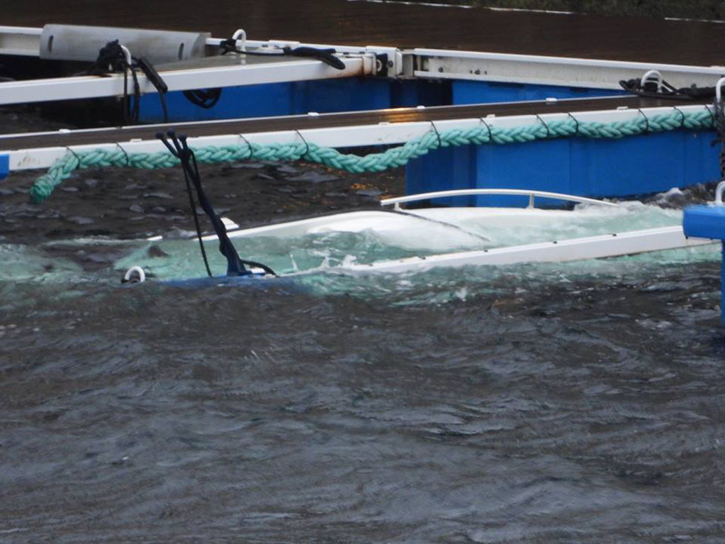 En båt har sunket i Marcussundet ved Nergata. ( Foto: Leif M. Andersen)