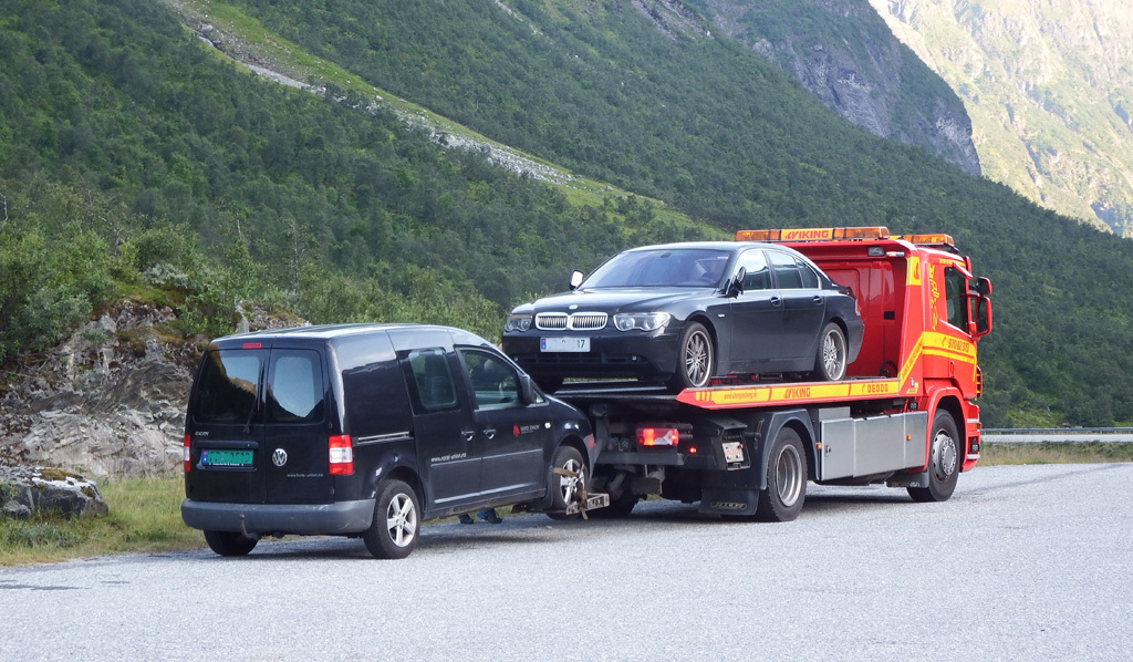 En rundtur i Sør-Norge på kryss og tvers så treffer man på redningsbiler som har med uskadede biler der teknikken har sagt takk for seg og stoppet på de mest forunderligste steder.