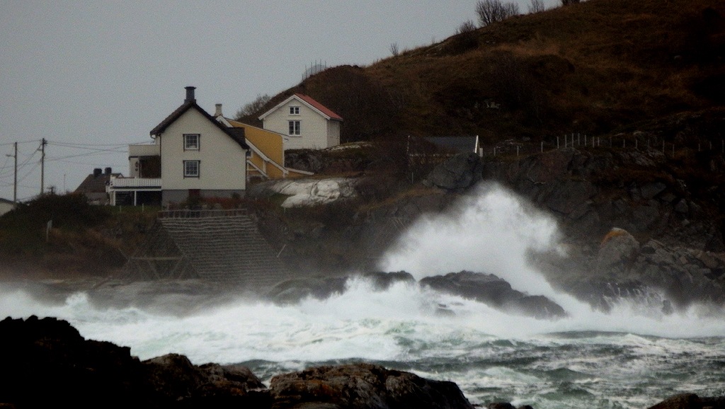 Det ble en normal høststorm fra morgenen tirsdag. Stormen har som vanlig slått ut kraftlinjer her og der på sin vei nordover, og litt trøbbel for skipstrafikk har fulgt med. Mye folk ute for å se på havet i dag. En " Folkestorm" i dag uten å sammenligne ordet med noe helt annet.