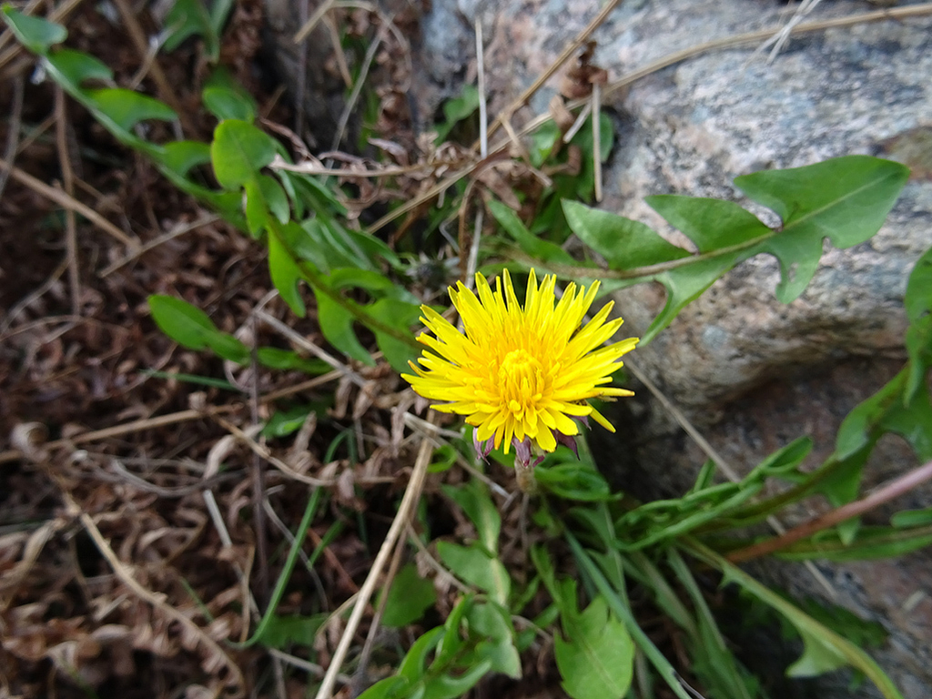 Hestehoven var først i år også,. men her den aller første løvetann vi har sett i år i solveggen ved Averøyveien ved Best Bremsnes tirsdag. Foto BN)