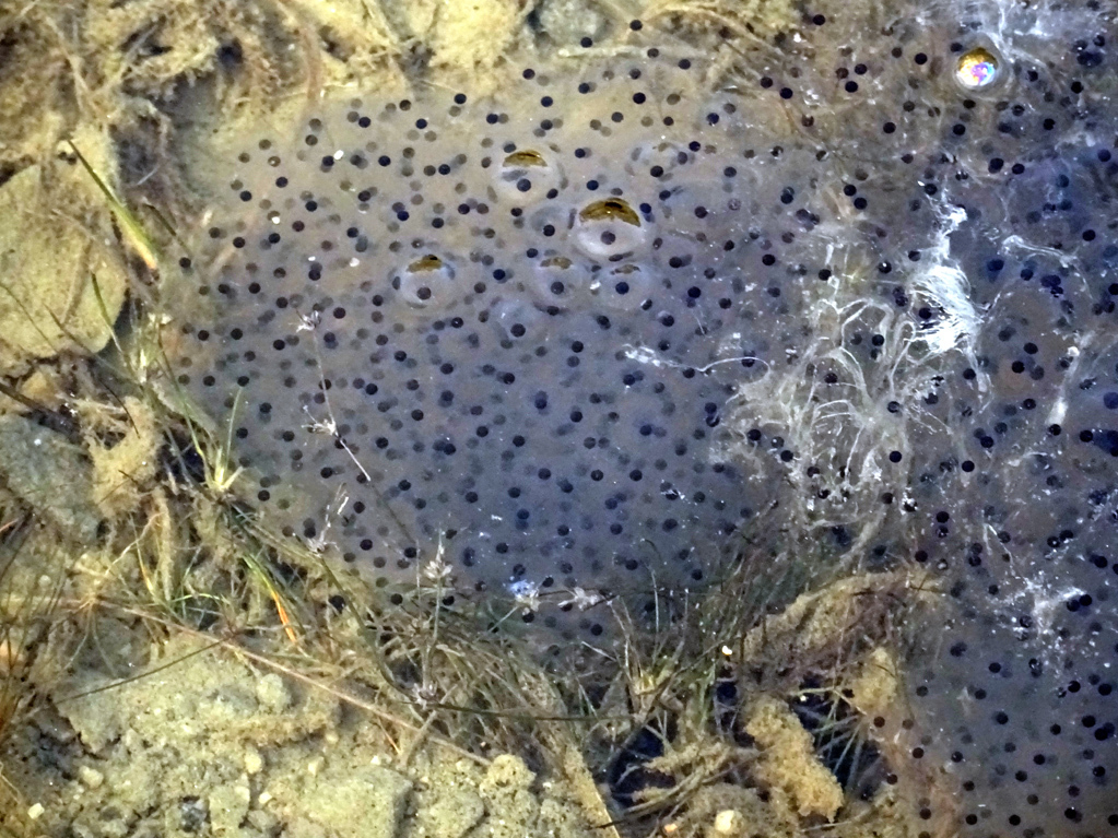 I Kobbvikveien på Bremsnes hadde en frosk lagt egg i en pytt i veikanten. ( Foto: Boa/BN)