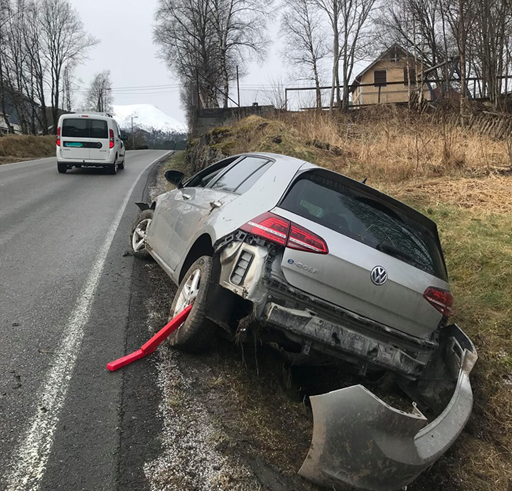 Bilen ser temmelig ramponert ut Gammelskolen i Bådalen i bakgrunnen. ( Foto: Gunn Elin Solvang/BN)