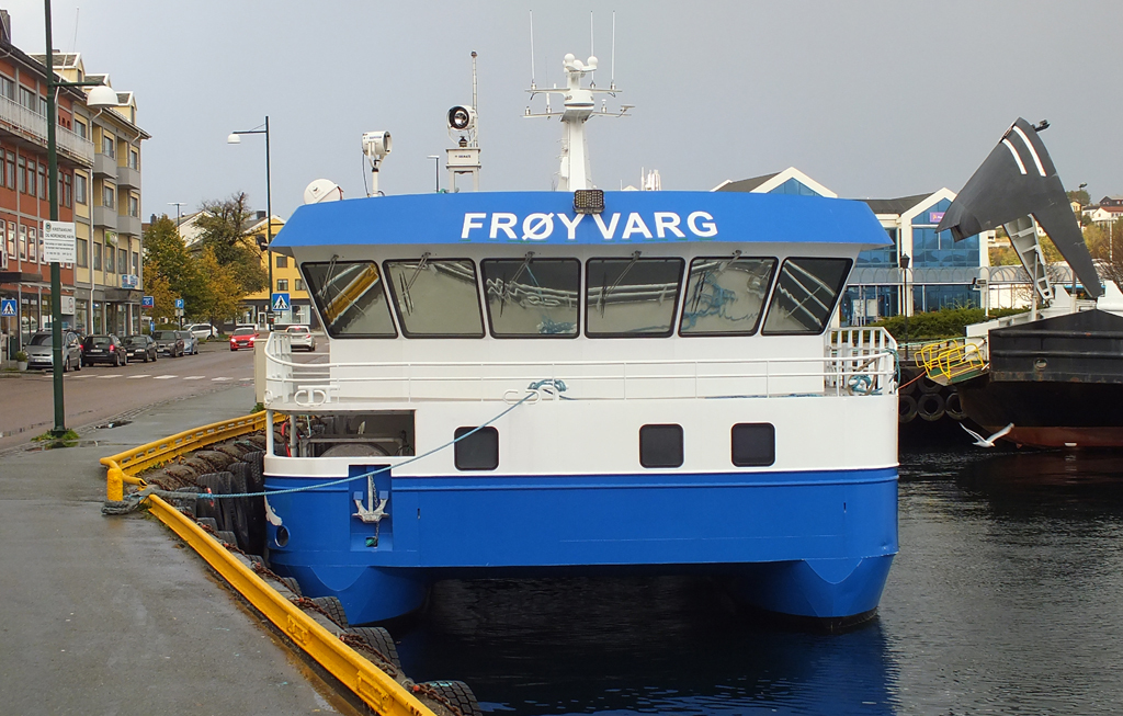 M/S Frøyvarg, (LH2816), 15 x 8 xN/A m.. Byggenummer 89 fra Ørnli Slipp A/S, Frøya i 2018. Levert til Frøy Akvaservice A/S på Sistranda. Ligger her i Johnsenhuken på Vågekaia. ( Foto: Håkon Bloch)