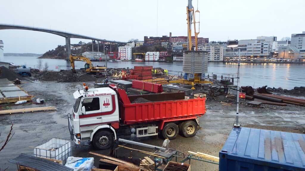 Her oversikt over deler av byggetomta ved Sørsundet i Kristiansund. ( Foto: Boa/BN)