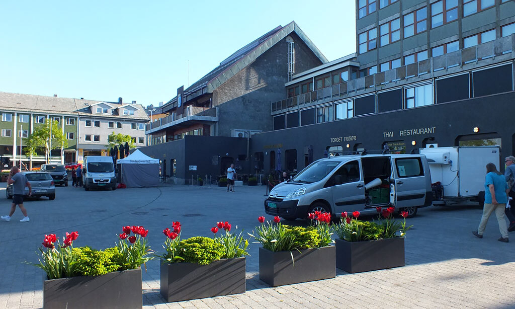 Kristiansund N: Det rigges til årets snadderfestival på Rådhusplassen. Det er nærmere 20 selgere som stiller. Der mye å velge mellom og det kan nevnes honning, gardsmeny, røyket laks, sild og fisk i mange varianter, kjøtt, heimebakst, sjokolade, spekemat, og varer fra de som de som til daglig holder til ved Rådhuset.( Foto: Håkon Bloch)