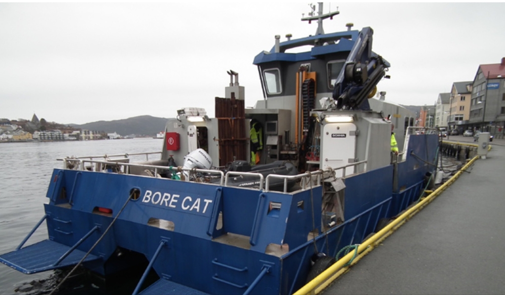 Stormen søretter kysten har hatt vindkast på 170 km/t. Multiconsult sin spesialbåt " Bore Cat" for grunnundersøkelser i sjøen er gått til bunns i Stavanger.