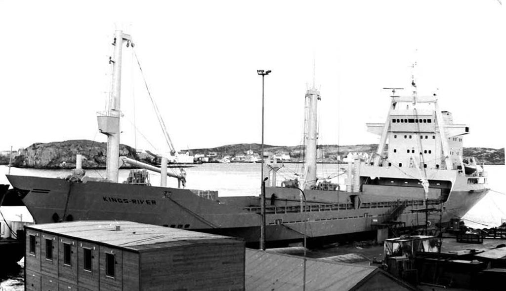 Her " Kings River" ved kai på Sterkoder i Melkvikan i 1977 , en periode der verftet hadde store ordrer inklusive båter til utviklingsprosjekter i Indonesia.( Foto: Per Helge Pedersen)
