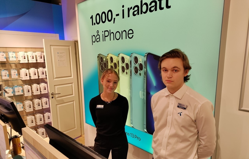 Her på Telenorbutikken på Alti Futura har de greie på ting. Mobiler er fagfeltet og ungdommene finner ut av det meste. BN fikk diagnose på en Iphone 7 Plus som ikke ringte eller mottok signal , pluss Google gmail som stod bom fast på en android. Da vi sånn plutselig stakk innom. Her Ingrid Gundersen og Mads Myhre . Bra service. ( BN foto)