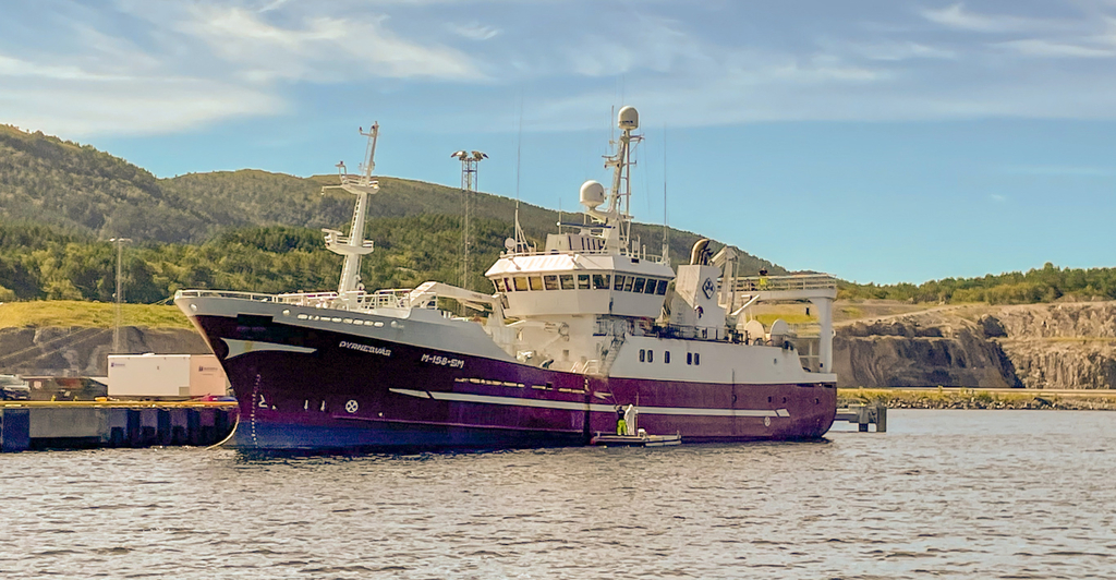 Fiskebåten " Dyrnesvåg til kai i Kristvika i Averøy. ( Foto: Geir Tøvik)