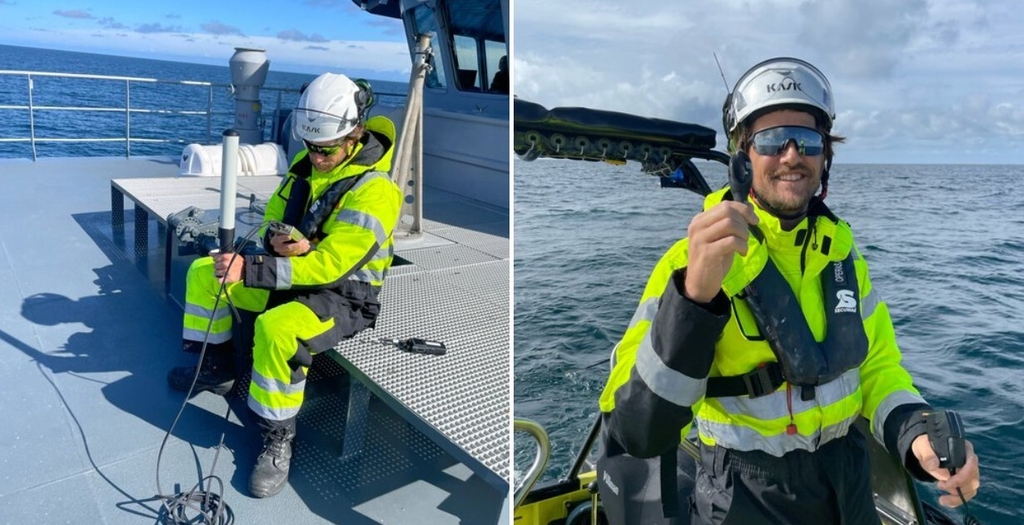 Kystvaktskipet " Tor " har idag bistått Havforskningsinstituttet med opptak av ett satelittmerke som har vært festet i en makrellstørje. Etter ett år fløyt det nå opp nord av Troll C og Havforskningsinstituttet kan nå laste ned mye god data om forhold i havet samt vandringsmønsteret til fisken. ( Foto: Kystvakten)