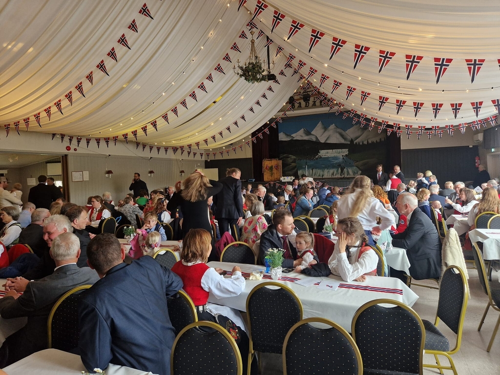 Toget gikk til Bådalstun grendahus som er nesten 50 år; bygd 1974. ( Foto: Magnar Heggeset)