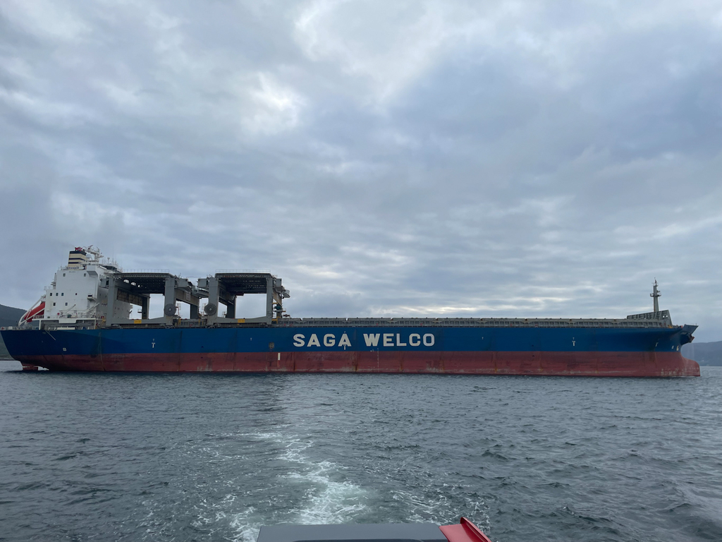 Purple Sea ble ferdig utlosset på Hydro Sunndal i dag og kvitterte los i Griphølen og går sørover for ordre. (Foto:Geir Tøvik)