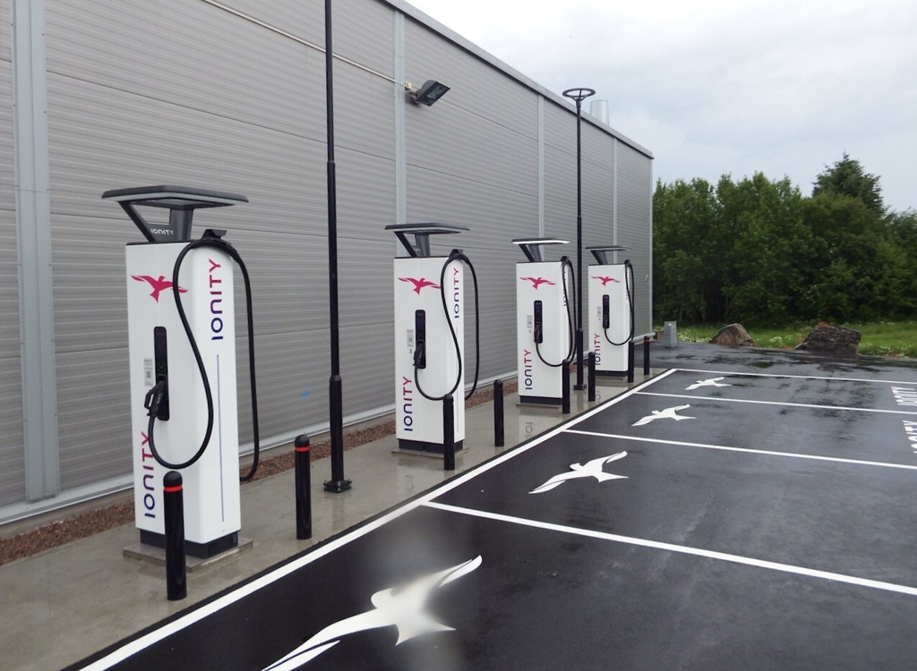 Snart blir vel ladestasjonen til elbil åpnet ved Kiwi på Kårvåg. Her er det plass for 4 personbiler og to litt større biler. Ved lading på IONITY ladestasjoner kan du velge å betale per gang, eller gjennom et abonnement . ( Foto: BN)