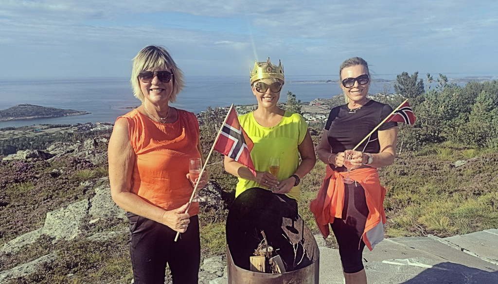 Oppe på toppen av de populære trappene på Kvernberget vest traff vi på et snilt venninnefølge som feiret litt 50 årsdag i hvilegropa der. Med flagg, bobler og bål samt fint vær ikke minst. Senere i kveld skulle de en tur på byen. Fra venstre May Nilsson, bursdagsdame Anne Katrine Strømsvåg og Gunn Kämpe. ( Foto: Boa / BN)