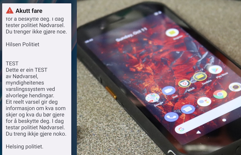 BN hadde to mobiler med forskjellige nummer klar, men kun den ene mottok melding. Det er Politiet, Direktoratet for samfunnsikkerhet og beredskap og Sivilforsvaret som står bak denne prøven. På Nødvarsel.no kan man gi tilbakemelding.