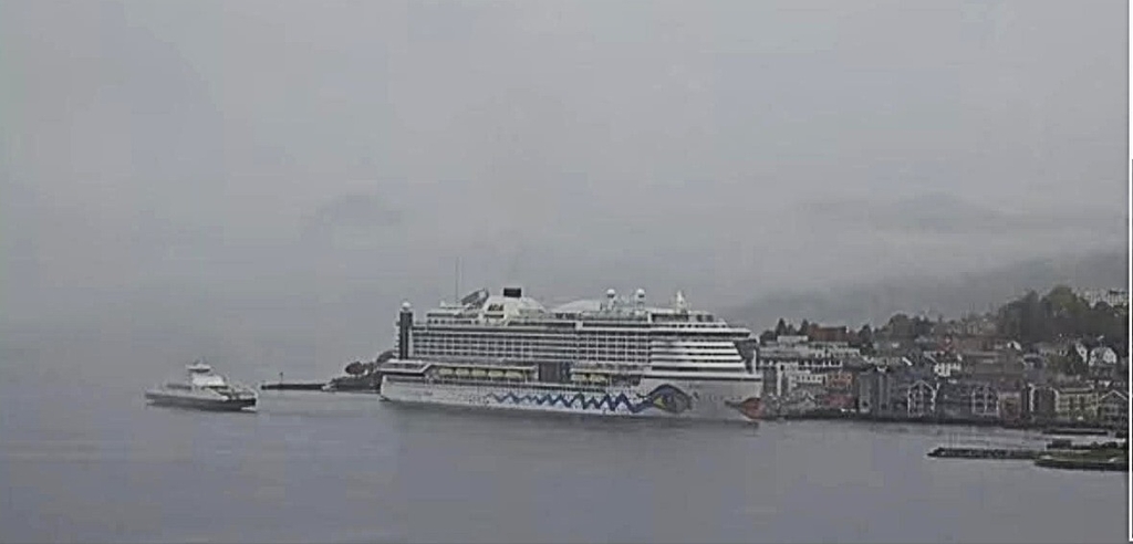 Skipet het "AidaPerla" og er 300 m langt. Levert i 2017 med plass til vel 4600 passasjerer og et mannskap på 900. Det gikk til Trondheim ved 21 tiden tirsdag. ( Webkamera Molde)